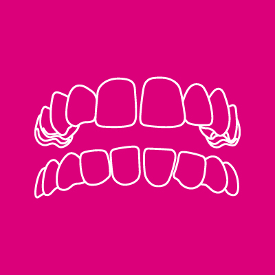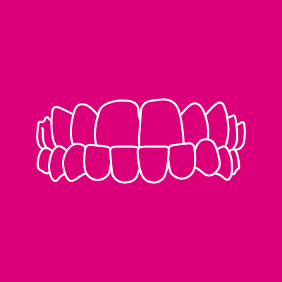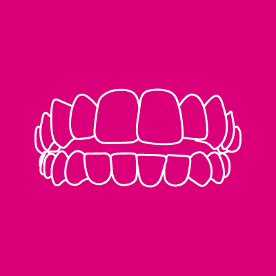 I denti superiori anteriori si chiudono davanti ai denti inferiori.